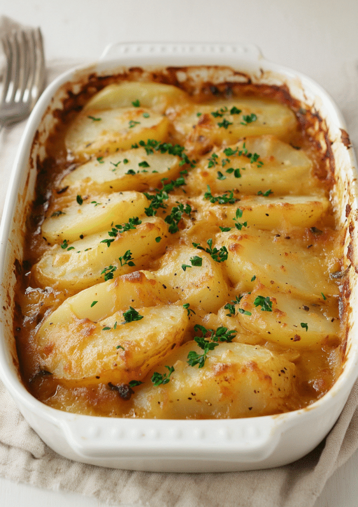 With just a handful of simple ingredients—potatoes, onions, broth, cream, and cheese—you can create a dish that feels gourmet without being complicated. Every bite is a balance of sweet caramelized onions, earthy potatoes, and indulgent creaminess. Whether you’re serving it for Thanksgiving, Friendsgiving, or a casual Sunday meal, this recipe guarantees warmth, flavor, and plenty of compliments.