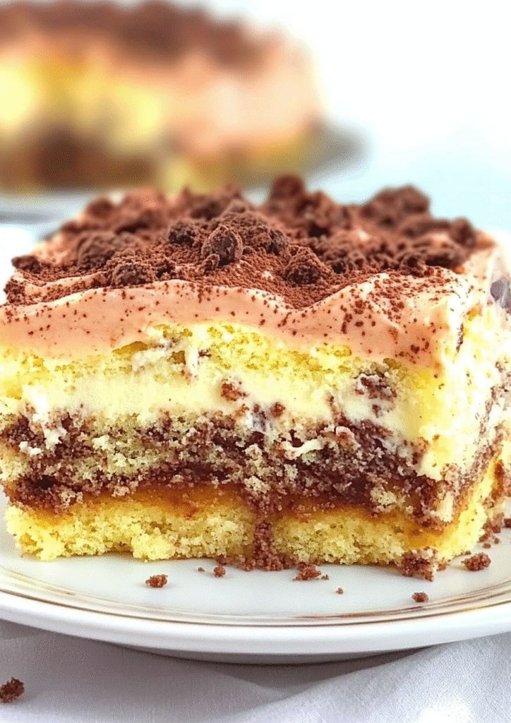 A rich, creamy layered cake with chocolate, sweet ricotta, and a fluffy topping. Easy to make, perfect for any occasion!